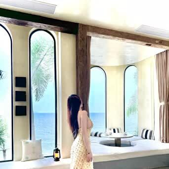美女穿着一条黄色深V吊带裙,大秀凹凸有致好身材,优雅又性感,尽显女人味。